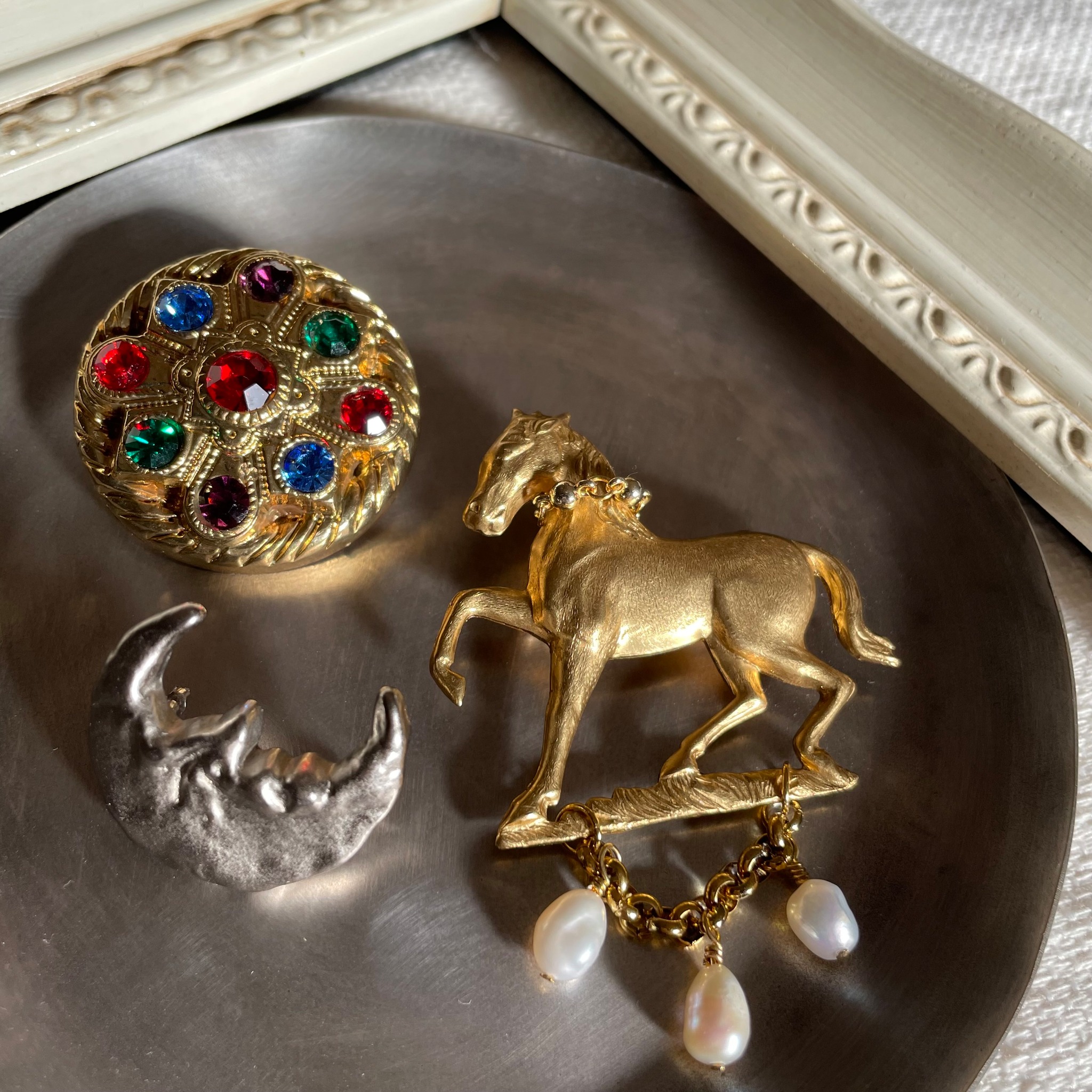 馬モチーフのブローチ。