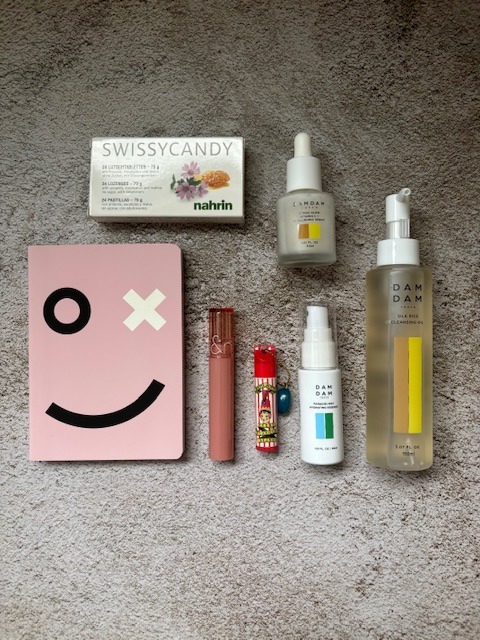 暑い日が続いてるので、DAMDAMのクレンジングオイルと、ビタミンC誘導体とヒアルロン酸を配合した美容液、メイクの仕上げにシュッとする化粧水(小さいサイズ)を…。