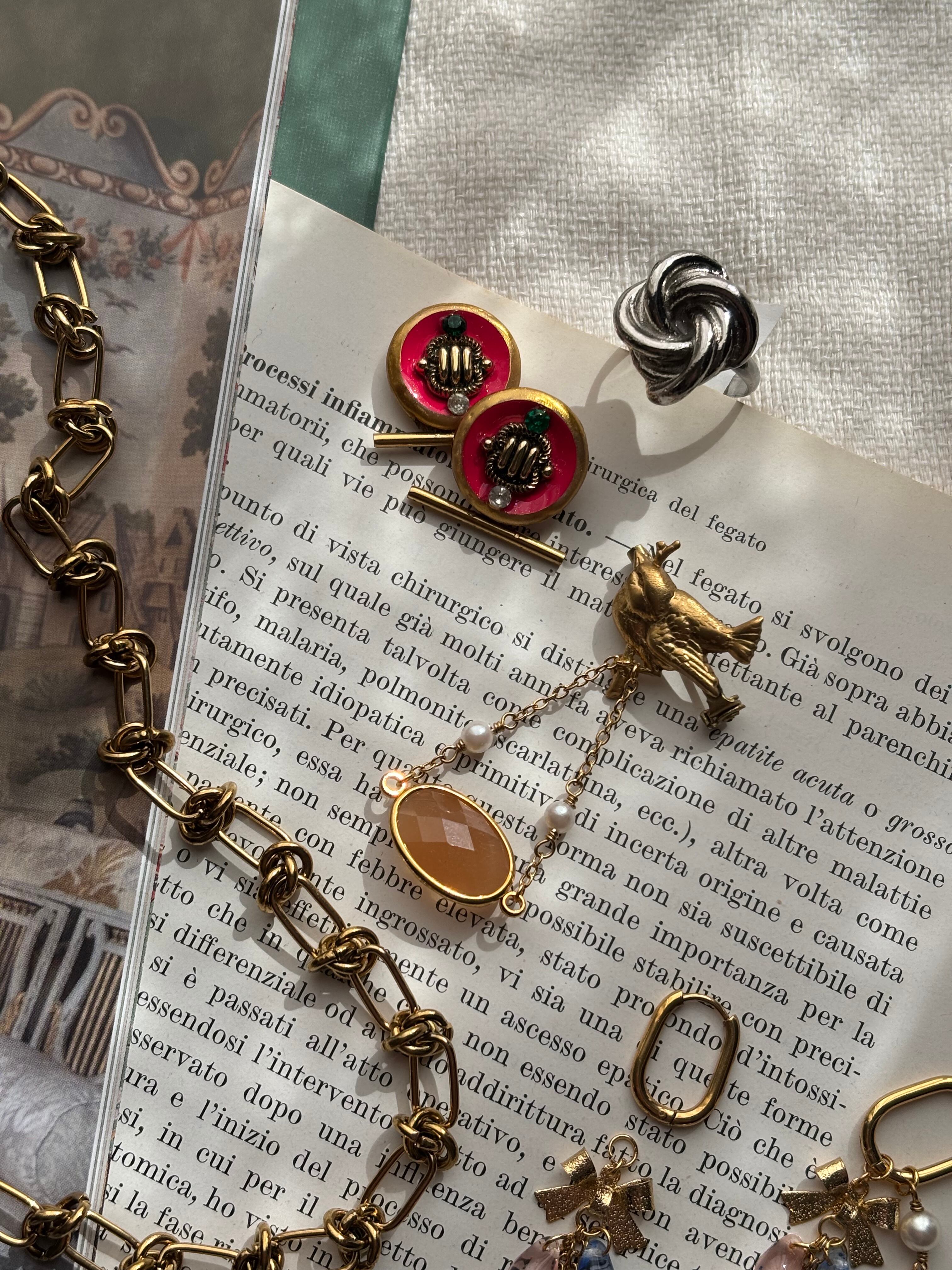 パリのパーツとヴィンテージパーツを取り入れながら、物語の中の装飾品のような雰囲気を大切に仕立てました。