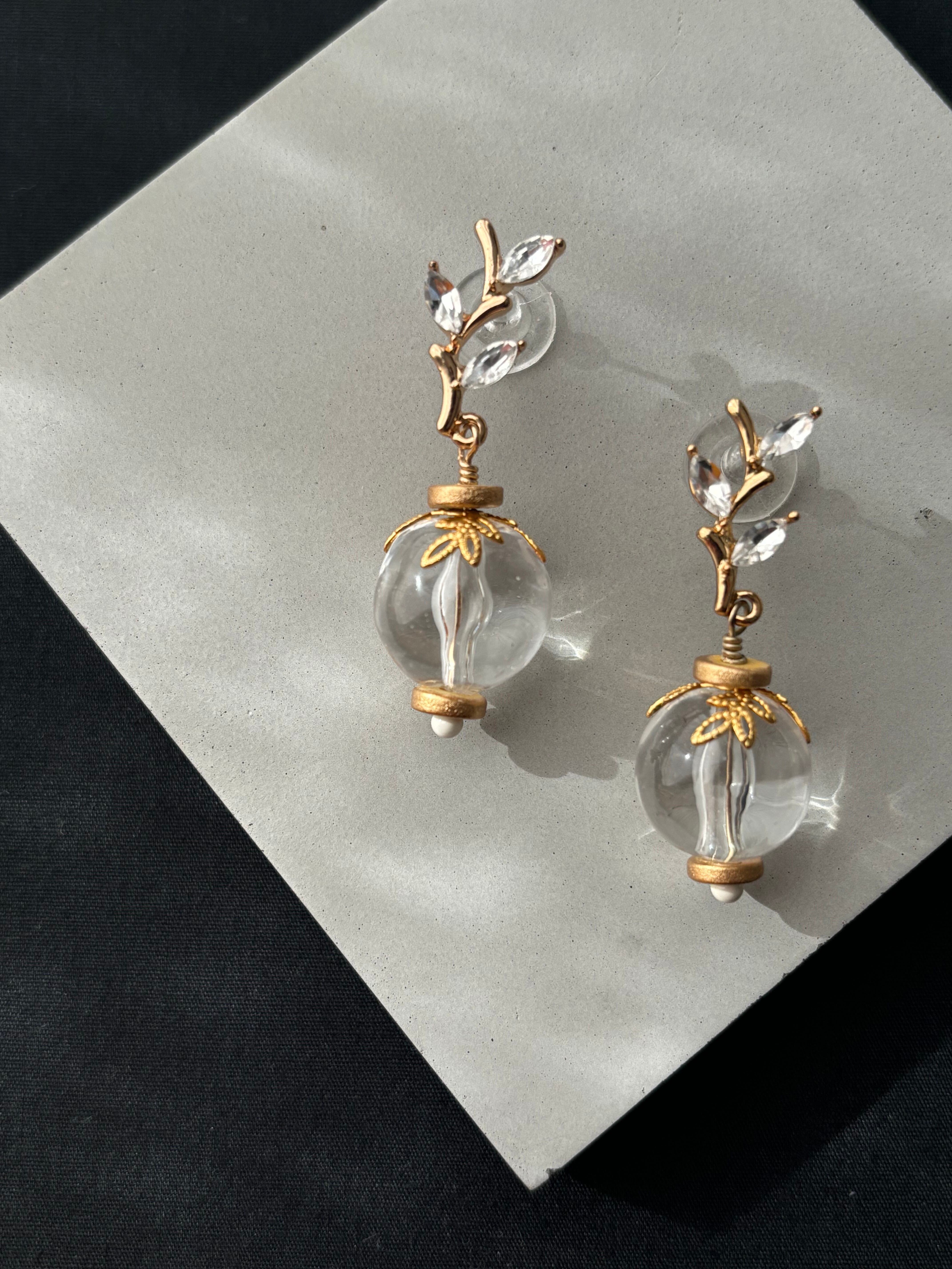 フランス素材を使用した、氷が溶けていくイメージにクリスマスムードをプラスしたピアス。